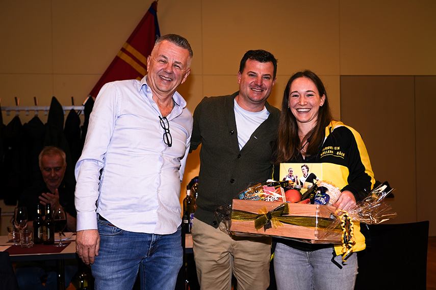 Ein Dankeschön für die Unterstützung übergeben von Vizepräsidentin Andrea Gugelmann an Urs Steimen und Roger Bühler